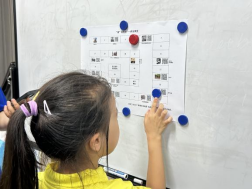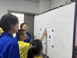 在“西工小树苗”夏令营,实践队员利用数字思政地图设计游戏,开展“‘途’说党史”实践活动,寓教于乐。在游戏过程中,实践队员们生动展示了“学生爱国游行”“中共代表团抵达西安”“抗日民族统一战线”“抗战精神”等内容,使小朋友们了解相关党史知识。在互动环节,小朋友们围绕“我的梦想”积极发言,红色理想的种子在小朋友们的心中生根发芽。